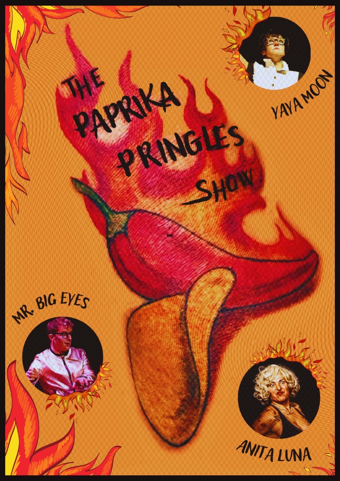 Uno show di teatro-cabaret erotico che mescola comicità, provocazione e arte clownesca in un'esperienza audace e travolgente. In scena tre performer – Mr. Big Eye, Yaya Moon e Anita Luna – portano un mix di personaggi sopra le righe, tra moraliste represse, rapper redentori e dive acrobatiche dipendenti dalle Pringles alla paprika. Lo spettacolo esplora i desideri, li mette a nudo e ci gioca senza pudore, tra satira e poesia del corpo. Con uno stile comico dissacrante e un ritmo incalzante, The Paprika Pringles Show fa ridere, arrossire e pensare. Ogni personaggio è una miccia che accende lo sguardo sul nostro rapporto con il piacere e la censura. Un'esperienza fuori dagli schemi, dove anche il pubblico rischia di finire... nel tubo delle Pringles. Vietato ai minori di 18 anni, consigliato a chi ha ancora voglia di sentirsi vivo.